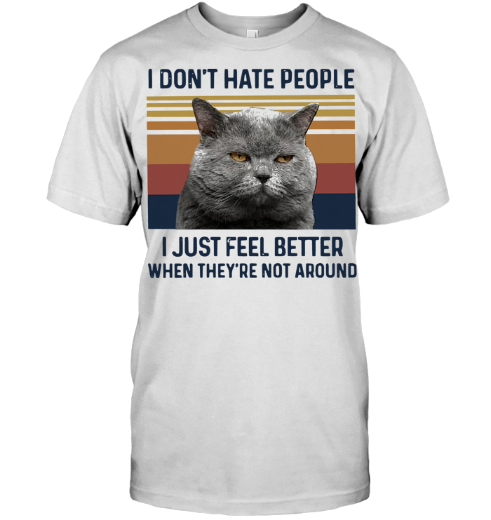 Cat I Don't Hate People I Just Feel Better When They're Not Around Vintage Retro T Shirt